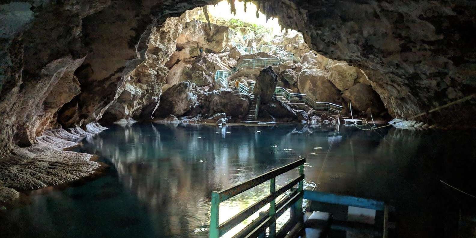 Wir beginnen unseren Ausflug im Nationalpark Los Tres Ojos. Versteckte Schönheit im Inneren einer Höhle, die 4 Seen beherbergt, die am Anfang war nur 1, heute getrennt von einander haben sehr unterschiedliche Eigenschaften.