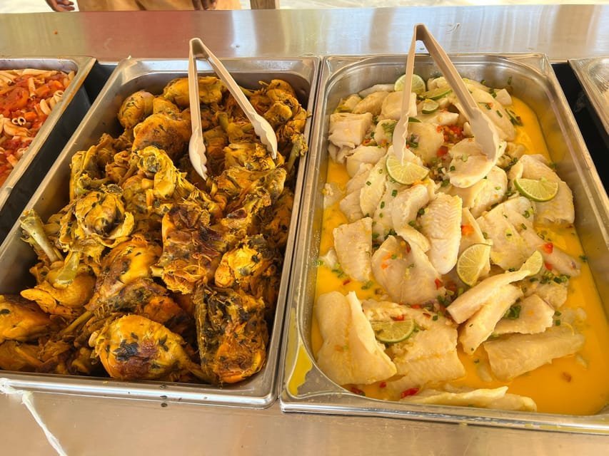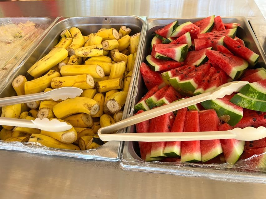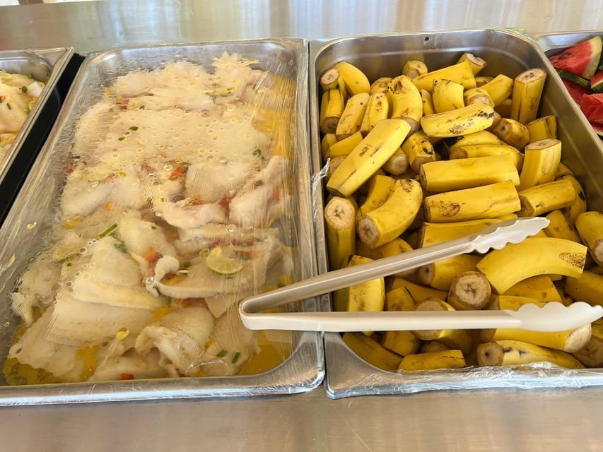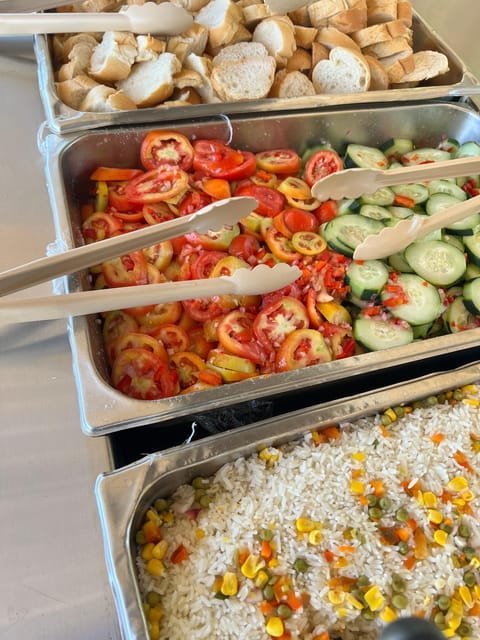 At 1:00 p.m., we will meet at Palmera TurÃstica beach to recharge our batteries with a buffet lunch where you can eat pasta, salads, and rice. Enjoy!