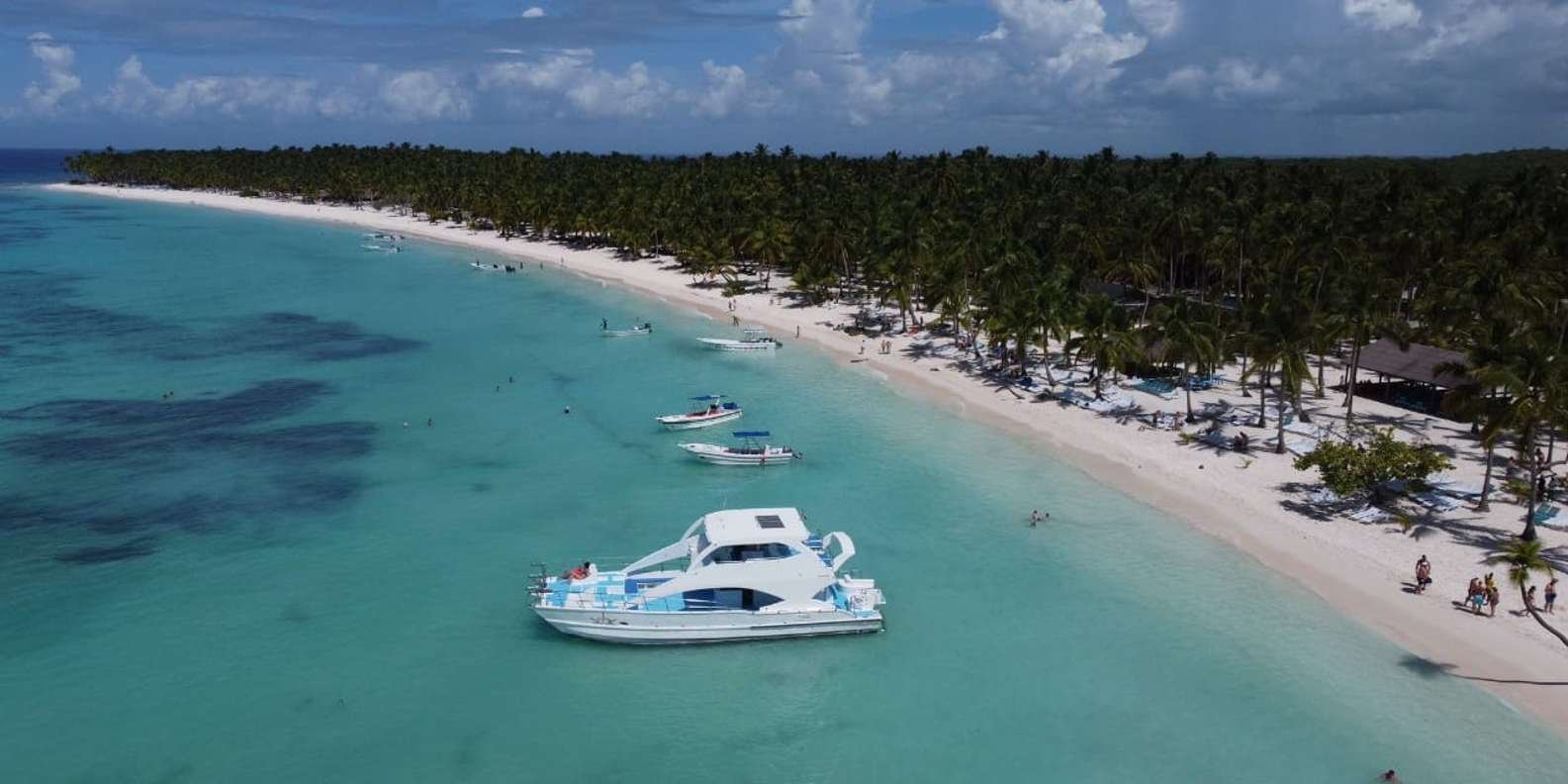Make your first stop at the beautiful Fan Beach (Playa Abanico), one of the most beautiful beaches on Saona Island. Spend time resting your mind and body between palm trees and sun loungers, which invite you to dream of the sound of the waves.