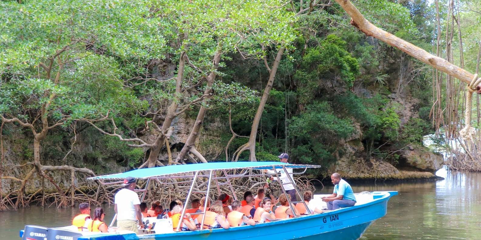 Journey to the remote north-east of the Dominican Republic to Los Haitises National Park and Montana Redonda. Tour Caño Hondo, San Lorenzo, and Cayo de los Pájaros and see the Atlantic Ocean from the mountain’s peak. Get roundtrip hotel transfers and lunch so you can relax between your adventures.Start the tour by boat through Caño Hondo, a stream that crosses the largest mangrove in the Caribbean. By foot, traverse the unique landscape of Los Haitises with its limestone karst plateau, conical hills, sinkholes, and caverns.Explore the islets and mangrove forests of San Lorenzo Bay and see low-flying birds in Cayo de los Pájaros, between the Boca del Infierno and El Naranjo Arriba. Stop at many mogotes and atolls scattered throughout the coast that surrounds the park, and identify dozens of native birds along the way.Learn about cupey trees and the birds that fill their horizontal branches, as well as wild banyan trees and tropical almond trees. Spot native crustaceans, fish, and birds that thrive on the impeccable river water and lush plant life.Continue to rockier terrain where you’ll visit two caverns decorated with petroglyphs and wall carvings – the traces left by the Tainos who lived there long ago. Watch out for bats and other nocturnal birds who call these caves home.Break for lunch at Hotel Paraíso Caño Hondo, an ecological hotel nestled at the foot of the mountain. Enjoy a swim in the hotel pools that are irrigated with crystal-clear water from a river that begins in the heart of the park.Finally, take the bus to Montaña Redonda and switch to a safari truck to reach the top. Find the best views in a special location between Laguna Limón and Laguna Redonda and see as far as the Bay of Samana, the Cordillera Oriental, and the Atlantic Ocean.